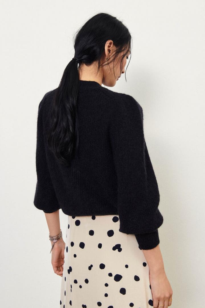 description  On craque pour le gilet BAYLOR ba&sh et son allure de petite veste, facile et féminine à la fois. Ce cardigan légèrement court opte pour une coupe simple, avec un col rond et des manches longues dont les poignets galbent l’avant-bras. On note les pinces aux épaules, le col et les emmanchures diminués. Le gilet est confectionné dans une maille perlée légère associant gonflant et belle tenue. Le détail chic ? Ses gros boutons ronds, en métal martelé doré, qui lui apportent une note élégante. Un gilet aussi à l’aise sur un jean qu’une pièce féminine.