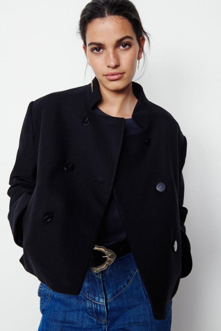 description La veste LEXY ba&sh propose une allure structurée et tendance. Cette veste courte, au volume oversize, associe un petit col à l’envers et des manches longues. Elle se ferme par un double boutonnage avec boutons métalliques argentés. Le détail mode ? Les poches comme insérées dans la couture des pinces côté. Une petite veste aux allures de caban court, parfaite sur un jean à la mi-saison.